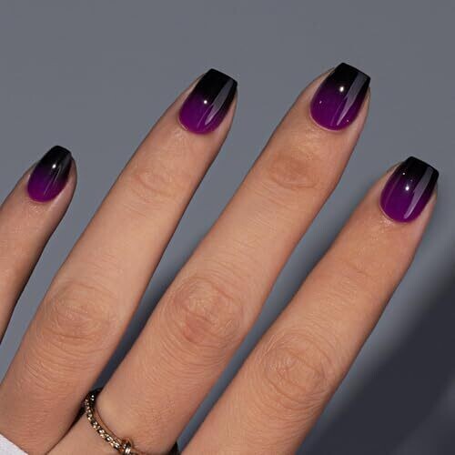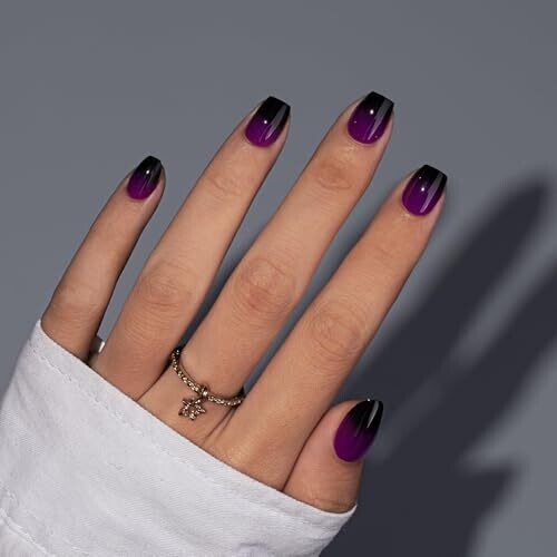 • Kqueenest Dark Purple Black Press On Nails - Short Square French Ombre Lavender, Pack of 30