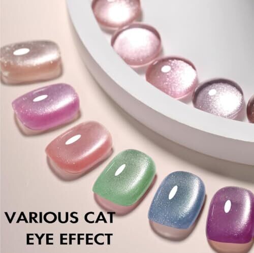 Agwenkui Pink Ombre Cat Eye Press On Nails | 24pcs Full Cover Long Stiletto