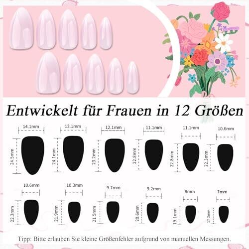 12 different sizes included to accommodate various fingernail shapes.