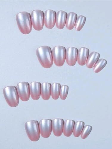 • Get a salon-quality manicure at home with 24 oval-shaped press-on nails in a pearl chrome pink-silver ombre.