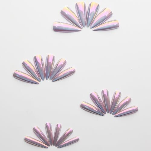 Glamorous ombre cat-eye finish on long stiletto press-ons with 24 glossy full-cover tips. Reusable, damage-free removal with jelly adhesive tabs. Quick at-home application for daily wear, parties, or weddings with salon-quality results.