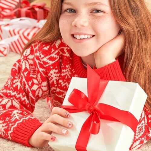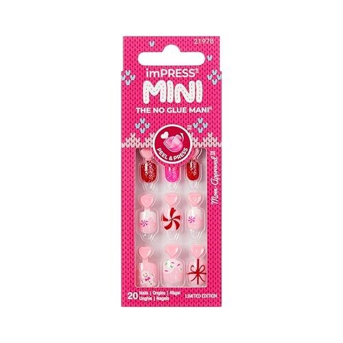 - Includes 20 mini press-ons and a mini nail file for at-home DIY holiday nail fun.