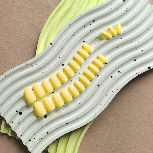 Kqueenest Bright Yellow Press On Nails Short Oval - Acrylic Press On Nails, Almond Nails, 24 pcs