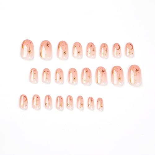 • Tmut 24pcs Short Oval False Nails Gold Moon Star Stick On Nails Nude Pink