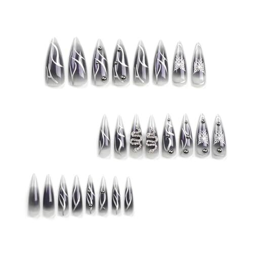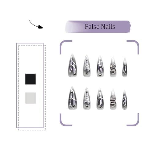 24 pcs Stiletto Press On Nails, Rhinestones Full Cover Artificial Nails Women Decoration