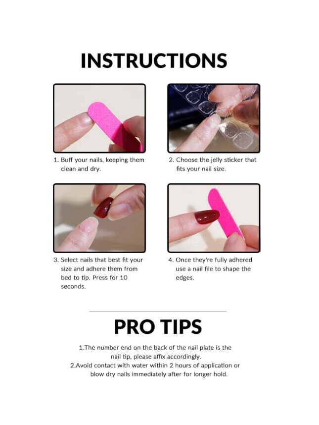 • Easy at-home application with a convenient press-on system—no salon visits needed.