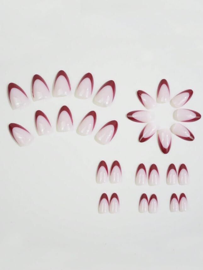 - Premium 24-piece press-on nails set designed for a luxurious, salon-worthy red French almond look that’s reusable and easy to wear.