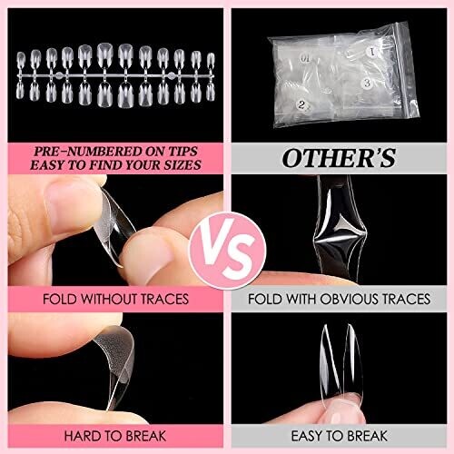 Aimeili Short Oval Acrylic Nail Tips, Pre-Shaped 504pcs, Round Soft Gel Press-On Nails, 12 Sizes