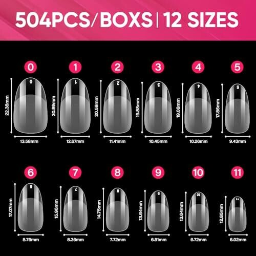 - Versatile 12-size set (0–11) with 504 pieces ensures a perfect fit for each finger for stunning, salon-worthy results at home.