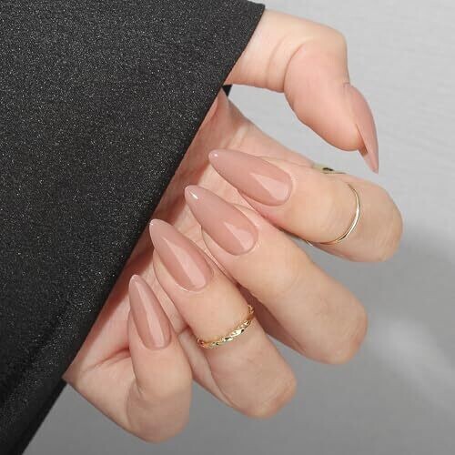 Kaleidnail 30 pcs Aurora Almond False Nails, Nude Glitter Press On Nails