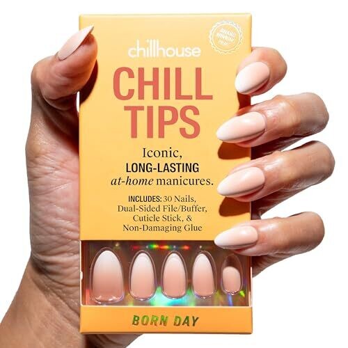 Chillhouse - Chill Tips, Press on Nails Kit - Born Day (Almond) - 30 Nail Shapes & Sizes - Up to 2 Weeks of Wear - Customizable Fit - Reusable - Latina Founded & Women Owned - Beauty & Self Care