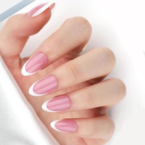 Acrylic Almond Press On Nails with French Tip