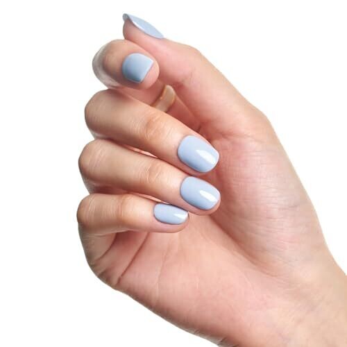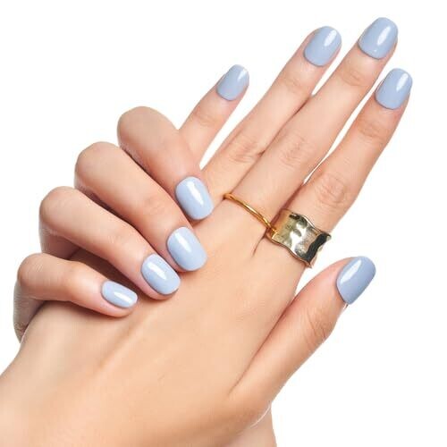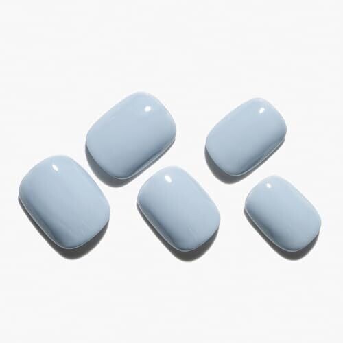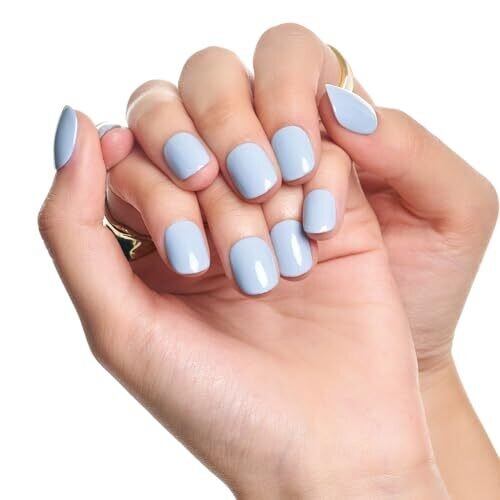 • Short squoval press-on nails in GLAMERMAID blue finish for a chic, salon-inspired look
