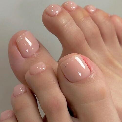 • Glamermaid Press On Toenails, Pure Nude UV Gel Nails Kit, 24 pcs Glossy Reusable UV Finish