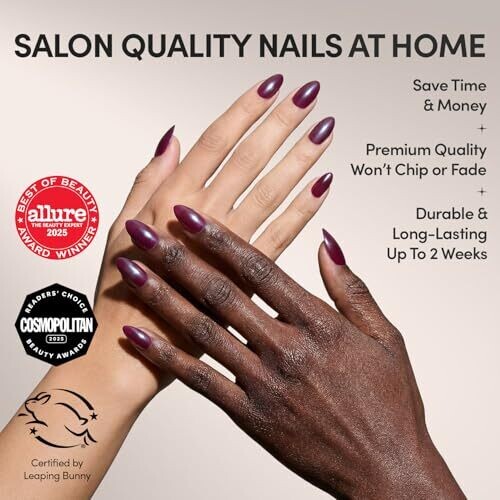 - Easy-to-apply press-on nails for salon-quality results in minutes, with minimal hassle.