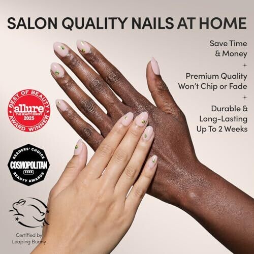 - Reusable design with gentle removal for multiple wears without compromising the nail bed.