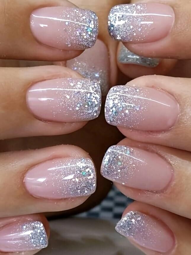 • Silver ombre tip accents add a stylish touch to your mani