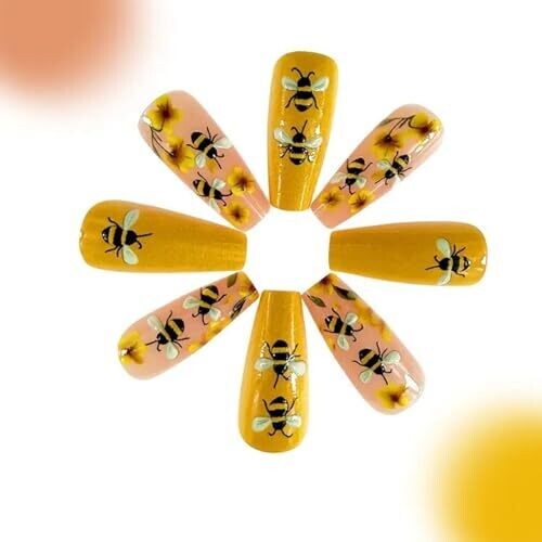 Be the first to review “MMGGFQ Press On Nails Adorable 3D Embossed Bumblebee Flowers Coffin Nails 24pcs” Cancel reply