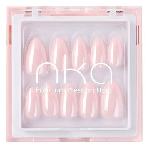 Nka Press-On Nails Kit, 30 Soft Acrylic Nails In 15 Sizes with Glue, Tabs & Prep Tools – Long-Lasting Salon Look (Blush Aura, Short Almond)