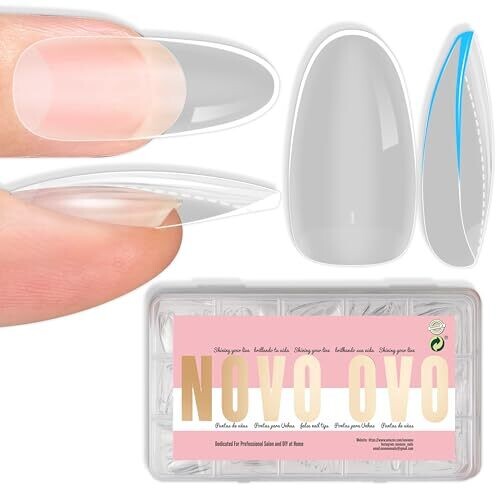 Novo Ovo Medium Nail Tips Extra Thick Press On No C Curve Soft Gel Clear 224 pcs