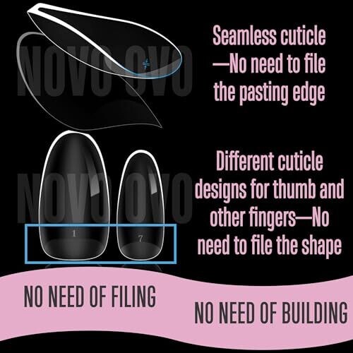 • Novo Ovo Oval Tips Extra Thick Press On No C Curve Gel for Acrylic 14 Sizes