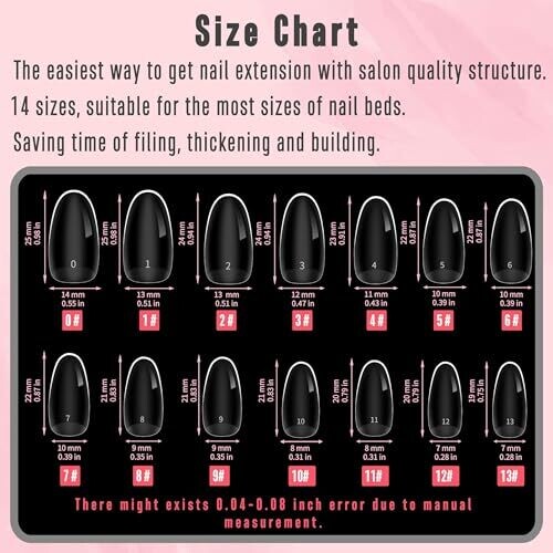 • 14 sizes ensure a precise fit for a wide range of nail beds and shapes.
