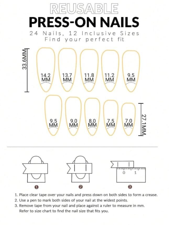 • 24-piece press-on nail set in a medium coffin length, designed for a modern, on-trend finish.