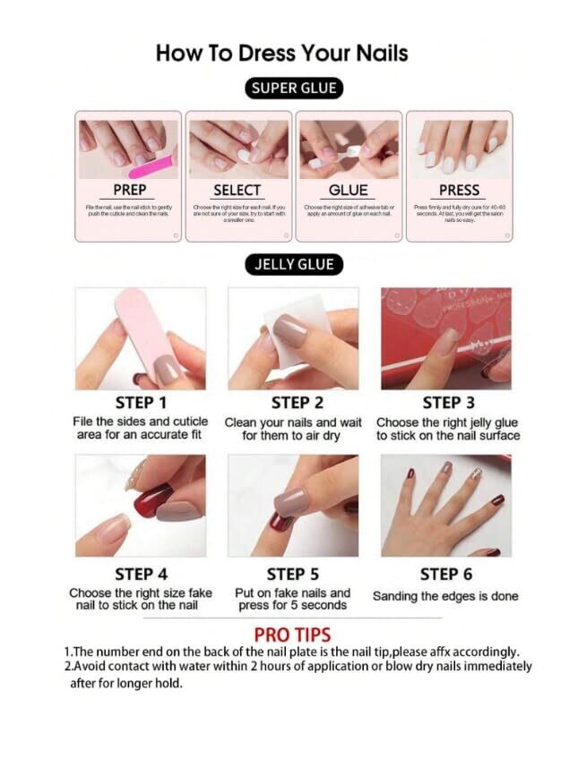 Includes professional jelly adhesive and nail file for convenient at-home application and perfect fitting.