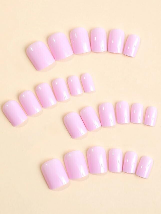 • Press-On Nails Hot Pink Square, 24 Pieces, Reusable Nails with Protective Coating (Lilac - Square)