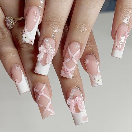 Be the first to review “Press On Nails, Long Length Square Pink French Bow Coffin Nails with 3D Flowers” Cancel reply
