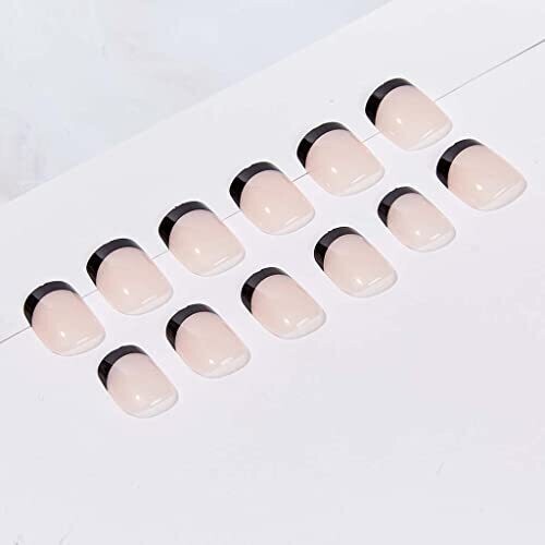• Rikview Acrylic Press On Nails French Tip Oval Nails Glossy Full Cover (Black)