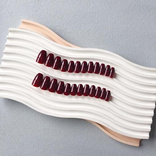 - Quick application with a salon-quality finish thanks to the dark red coffin nails at medium length.