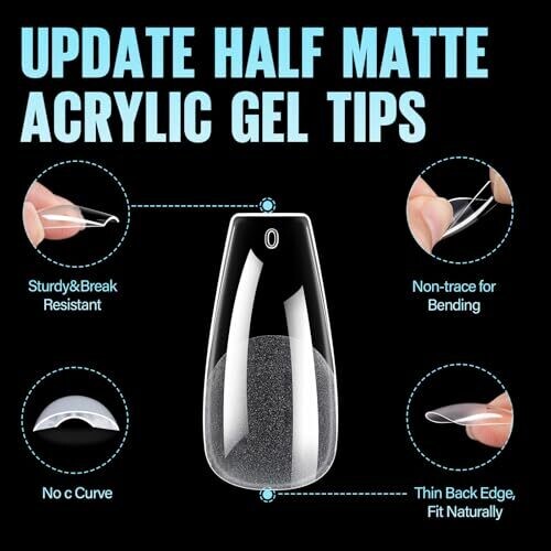 Tomicca Long Stiletto Nail Tips, 504 Half Matte Soft Gel Tips, No File Needed
