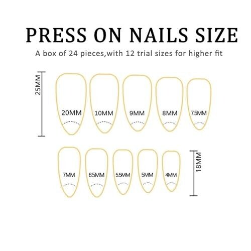 • Ueiykoz Press On Nails 24-pcs Acrylic Medium Almond French Full Cover False Nails Women Girls White Tip (Gold)