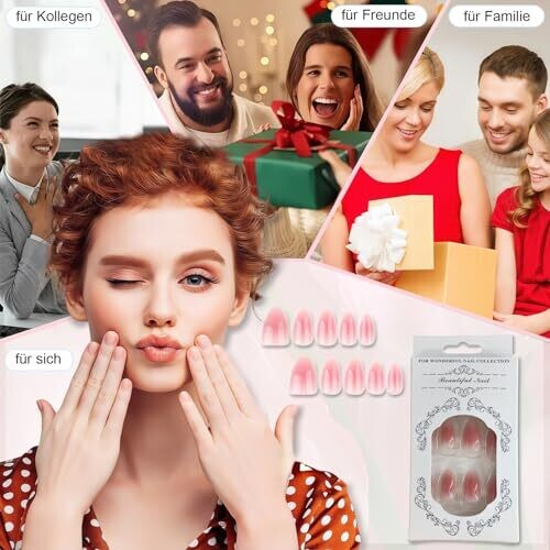 • Virellay Almond Fake Nails offer an almond-shaped design with a pink ombre finish for a salon-quality look at home.