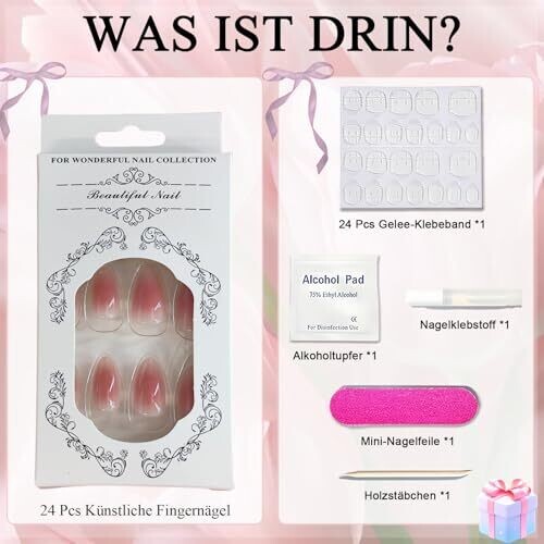 • Virellay Almond Fake Nails, Press On Nails Almond (Pink Ombre, 24 Pieces)