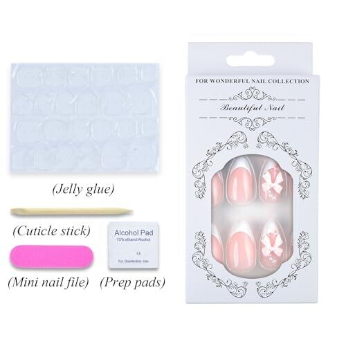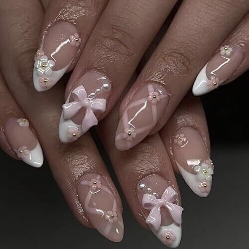 Yazikisa press-on nails offer almond oval tips with a glossy, full-coverage finish. Includes 24 pieces with bow charms for a chic Y2K manicure. Easy glue-on application for quick, durable fingernail enhancement for women and girls.