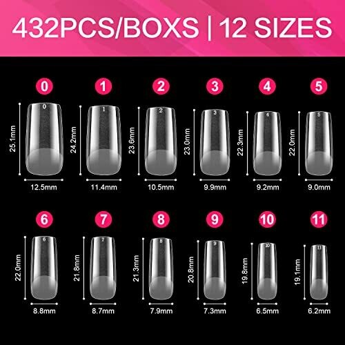 • Aimeili Square Fake Nail Tips 432pcs Full Cover Tips for Soak-off Extension