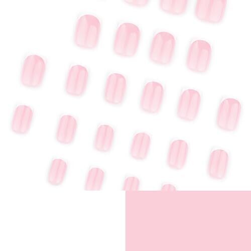 Crafted from ABS plastic. Includes 12 sizes. Finish is a high-shine glossy look. Application involves prep, fitting from the 12-size range, and applying with included jelly adhesive tabs. Nails are designed as short square shape. Set includes 24 nails.