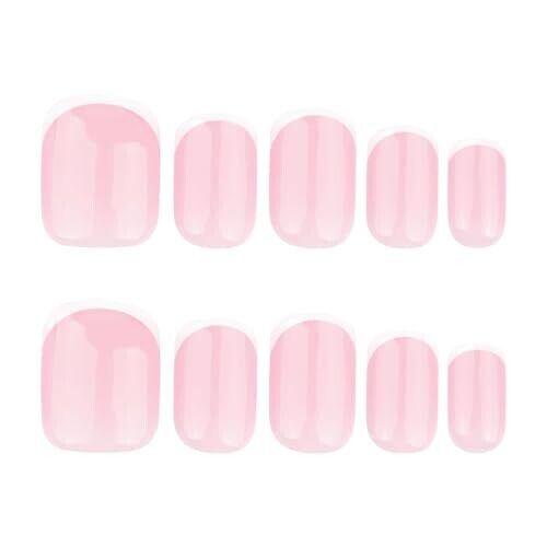 24 pieces full set with jelly adhesive tabs, including nails in various sizes and adhesive tabs for quick, clean application. Short square nude French style with natural nude color and white tips. Premium acrylic material: