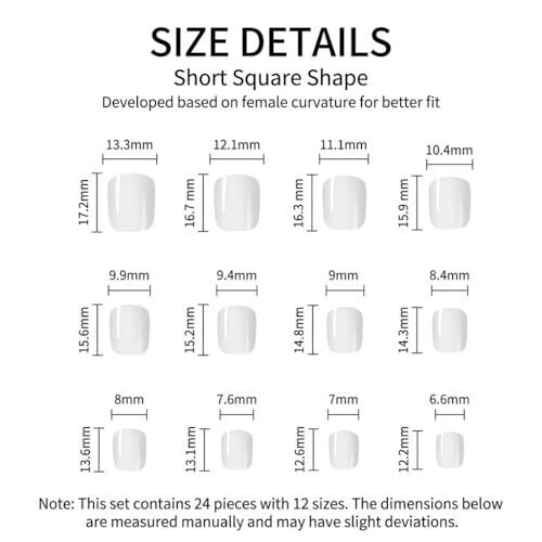 • Knkuo 24 pcs Acrylic French False Nails, Short Square Press-On Nails