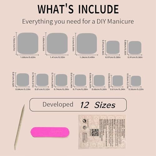 • 24 chic short square tips in assorted sizes for a flawless, natural-looking finish.