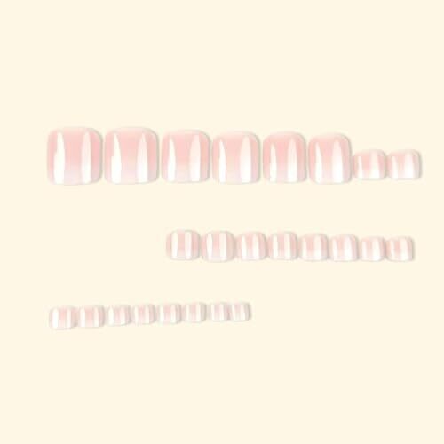 This 24-piece press-on toenail kit offers short square tips in assorted sizes for a natural, seamless look. Includes jelly glue stickers for quick, secure adhesion, plus lightweight ABS construction for comfort and summer-ready patterns to elevate your style.