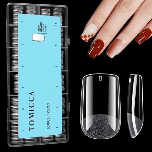 Tomicca Short Square Nail Tips, 504pcs Half Matte Soft Gel, No File Needed - 12 Sizes