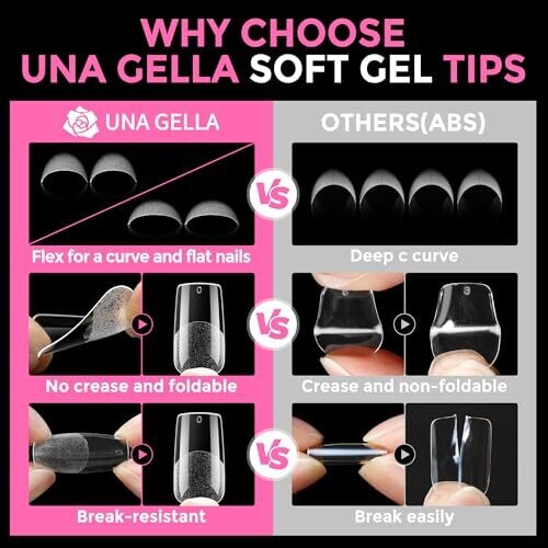 • Una Gella Square Fake Nails: 216pcs Press-On Tips for Full Cover Clear Nail Extensions