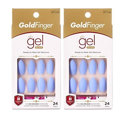 • Kiss Gold Finger Gel Glam 24 Nails GFC06 Stiletto Matte Cornflower Blue Finish (2 Pack)
