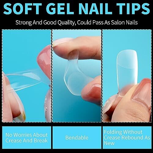 - Premium soft gel tips that are thinner, more durable, flexible, and natural-looking compared to traditional tips.