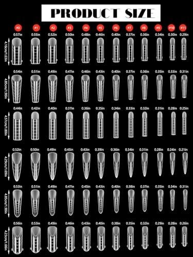 • Includes 288 pieces in 12 shape styles (stiletto, coffin, square, ballerina, half cover, and more) across 12 sizes for versatile nail lengths and shapes.