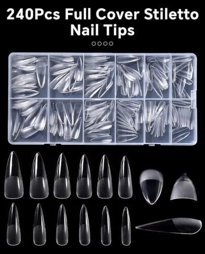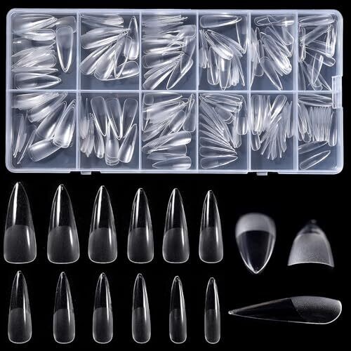 Yimart 240pcs/Box Stiletto Full Cover Nails, 12 Sizes, 240 pcs, Clear Box