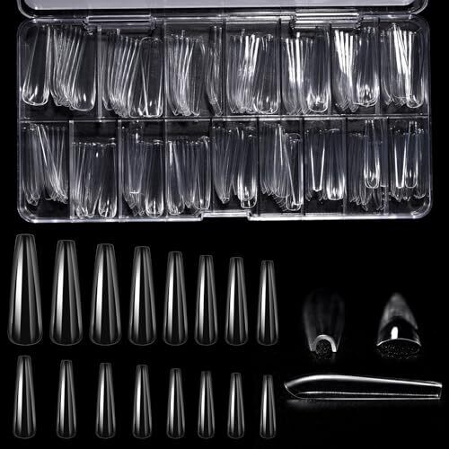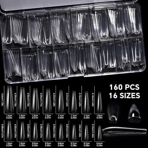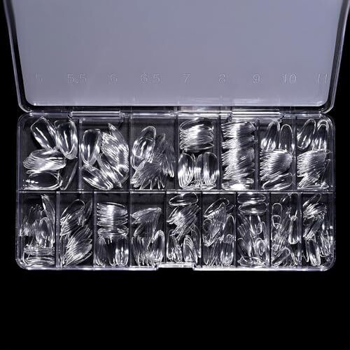 • Kads Deep C-Curve 160pcs Full-Cover Nail Tips Clear Pre-Built 16 Sizes